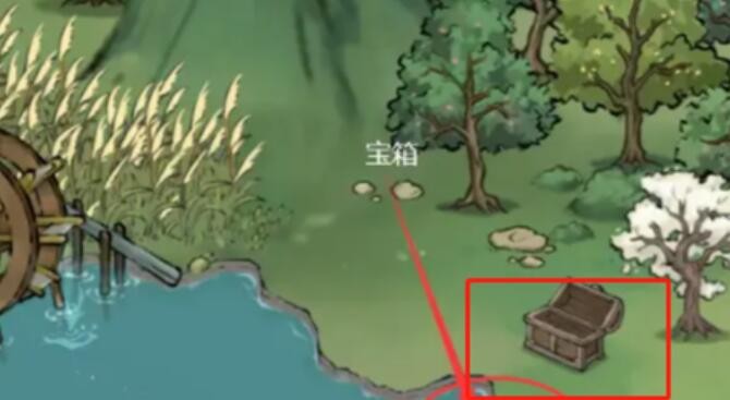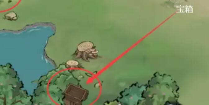 在地图右下角的对决桃树靠近湖泊的位置能够找到宝箱。在一个砍掉的栖霞树的旁边有宝箱 。